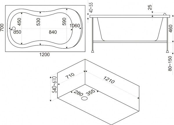 Ванна BAS Кэмерон 120х70 без гидромассажа - Характеристики