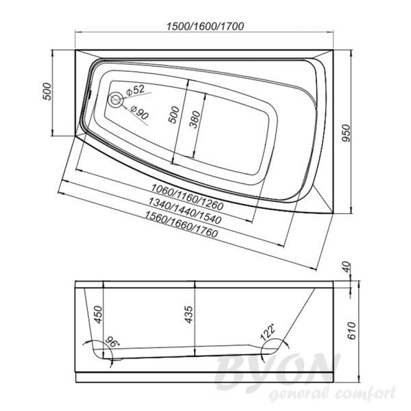 Ванна акриловая Byon Della 170x95 R - Характеристики