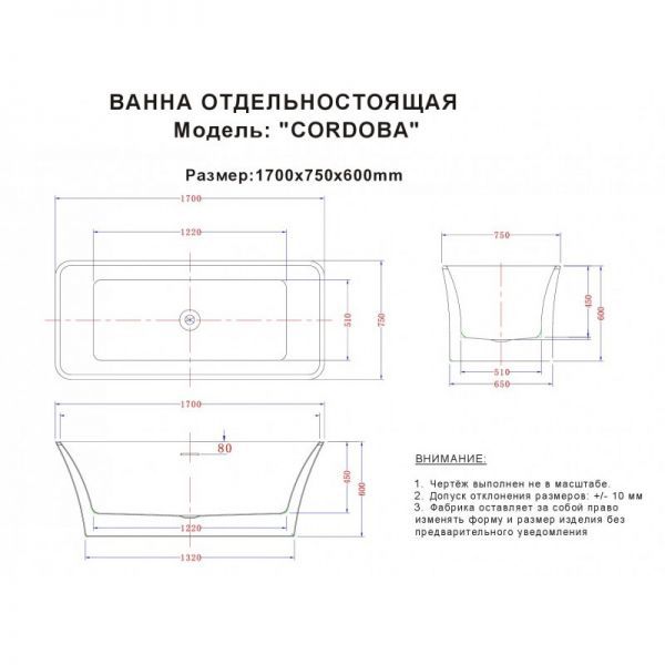 Акриловая ванна Esbano Cordoba - Характеристики