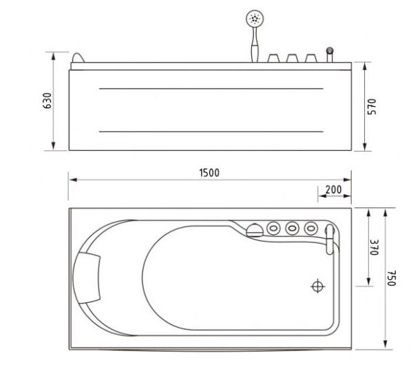 Прямоугольная акриловая ванна Gemy G9006-1,5 B - Характеристики