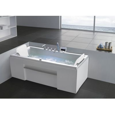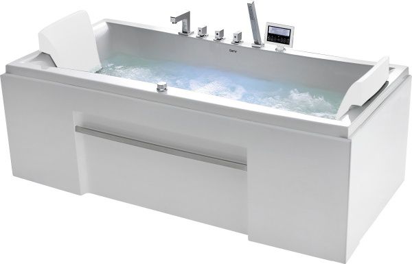 | Комплект: | смеситель с изливом для набора воды, душевая лейка, 2 подголовника, слив-перелив, съемный экран, 2 торцевых экрана |