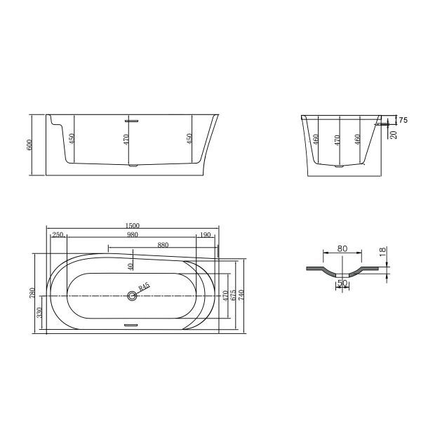 Ванна акриловая Vincea VBT-301-1500L - Характеристики