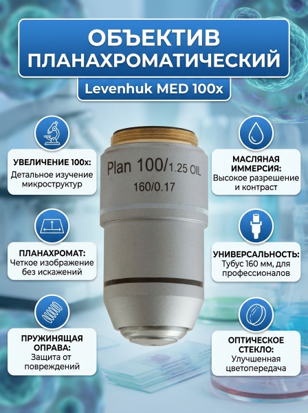 Объектив планахроматический Levenhuk MED 100x - Описание