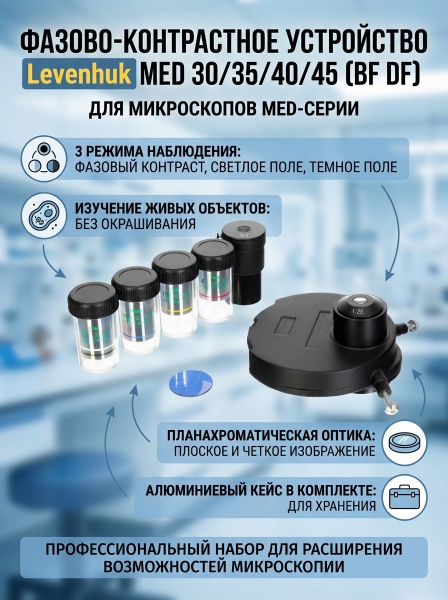 Фазово-контрастное устройство для микроскопов Levenhuk MED 30/35/40/45 (BF DF) - Доставка