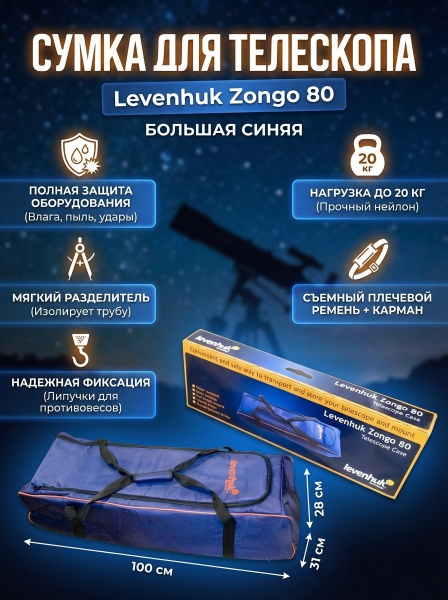 Сумка для телескопа Levenhuk Zongo 80 синяя большая - Преимущества
