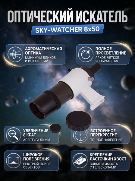 Искатель оптический Sky-Watcher 8x50 с креплением - Доставка