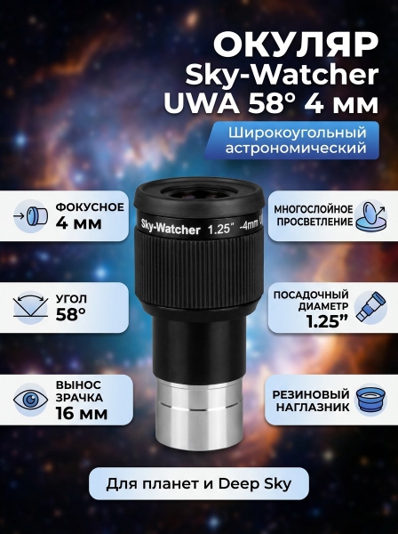 Купить Sky-Watcher UWA 58° 4 мм 1.25” по эксклюзивной цене от официального дилера. Профессиональные консультации.