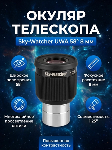 Окуляр Sky-Watcher UWA 58° 8 мм 1.25” - Отзывы