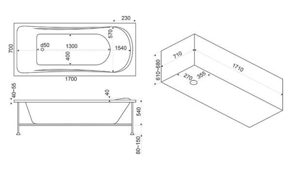 150 x 50 х 41 см
