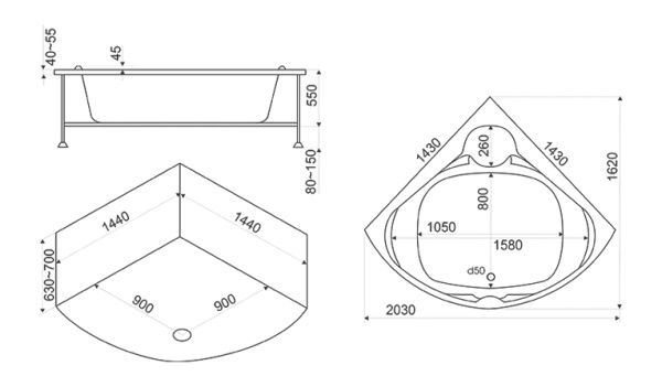 150 x 50 х 41 см