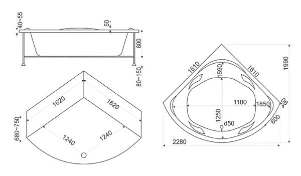 Обвязка для ванны BYON полуавтомат 55-65 см