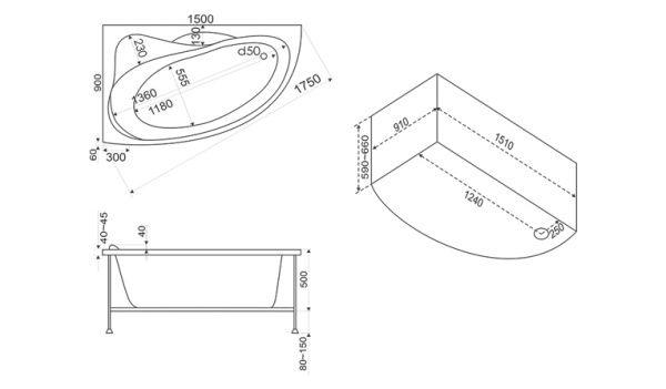 150 x 50 х 41 см