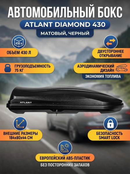 Купить Автомобильный бокс Atlant Diamond 430 л (матовый) по эксклюзивной цене от официального дилера. Профессиональные консультации.
