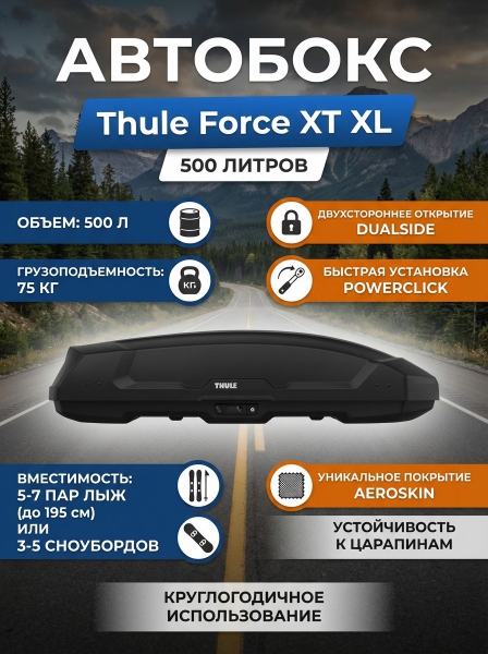 Купить Автомобильный бокс Thule Force 3 XL, черный, aeroskin, 500 л. по эксклюзивной цене от официального дилера. Профессиональные консультации.