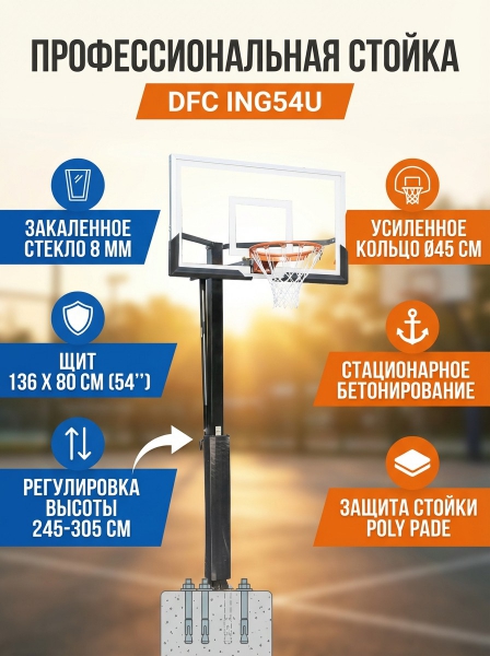 Баскетбольная стационарная стойка DFC ING54U - Описание