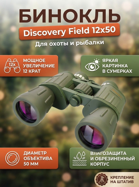 Купить бинокль для туризма и путешествий Discovery Field 12x50 по эксклюзивной цене от официального дилера. Профессиональные консультации.