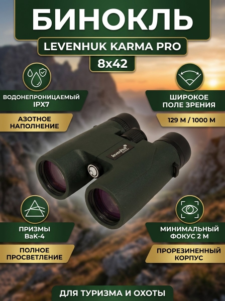 Купить бинокль для туризма и путешествий Levenhuk Karma PRO 8x42 по эксклюзивной цене от официального дилера. Профессиональные консультации.