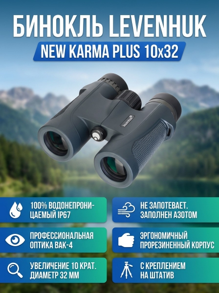 Купить бинокль для туризма и путешествий Levenhuk New Karma PLUS 10x32 по эксклюзивной цене от официального дилера. Профессиональные консультации.
