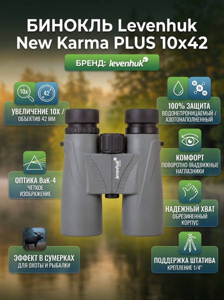 Бинокль для охоты и рыбалки Levenhuk New Karma PLUS 10x42 - Доставка