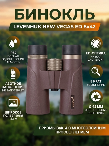 Купить бинокль для туризма и путешествий Levenhuk New Vegas ED 8x42 по эксклюзивной цене от официального дилера. Профессиональные консультации.