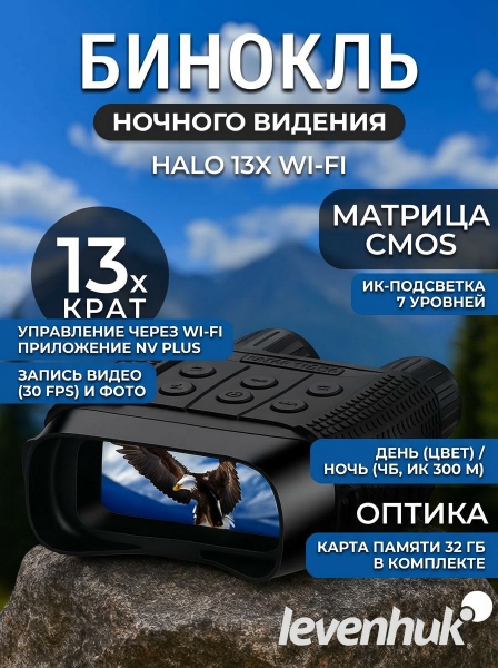 Купить бинокль ночного видения Levenhuk Halo 13x Wi-Fi по эксклюзивной цене от официального дилера. Профессиональные консультации.