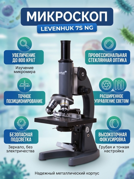 Купить биологический микроскоп Levenhuk 7S NG 71917 по эксклюзивной цене от официального дилера. Профессиональные консультации.