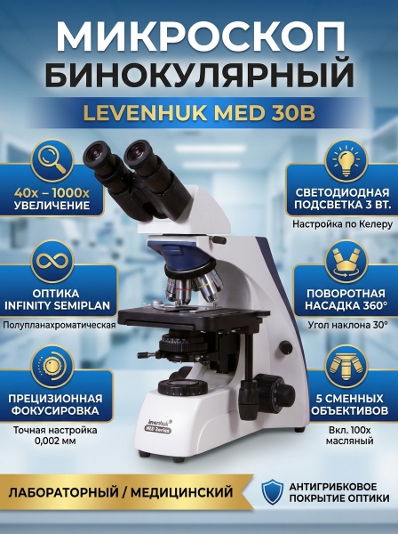 Купить биологический микроскоп Levenhuk MED 30B по эксклюзивной цене от официального дилера. Профессиональные консультации.