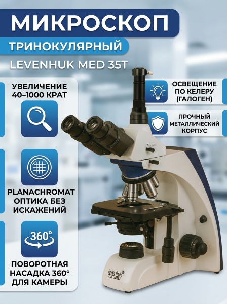 Купить биологический микроскоп Levenhuk MED 35T по эксклюзивной цене от официального дилера. Профессиональные консультации.