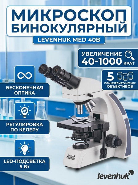 Купить биологический микроскоп Levenhuk MED 40B по эксклюзивной цене от официального дилера. Профессиональные консультации.