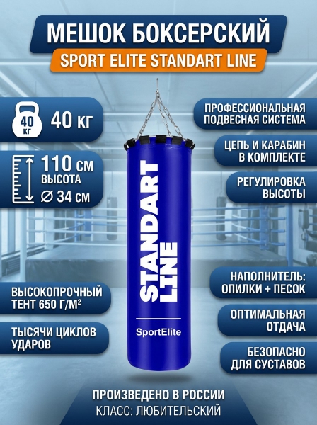 Мешок боксерский Sport Elite Standart Line 40 кг синий - Бренд