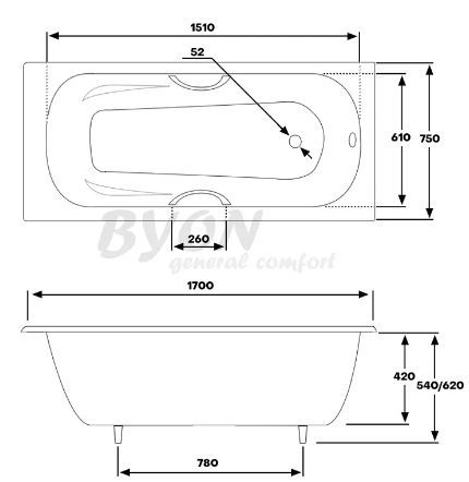 Купить чугунную ванну Byon 15 170х75 см с ручками по эксклюзивной цене от официального дилера. Профессиональные консультации.