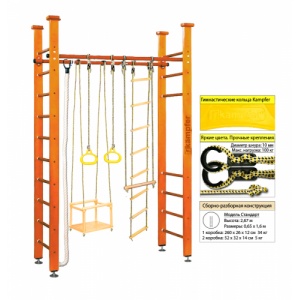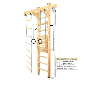 | Комплектация: | турник, шведская стенка, канат, кольца, трапеция, скат-скалолаз |