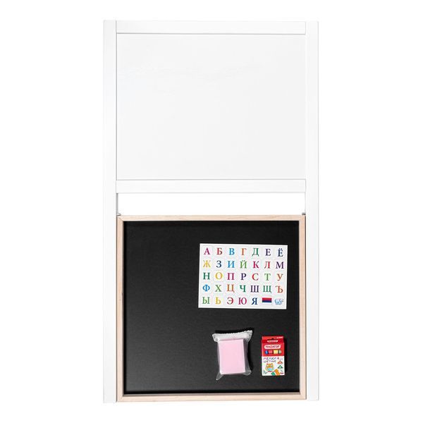 | Две рабочие поверхности - для рисования мелом и маркерами. | |