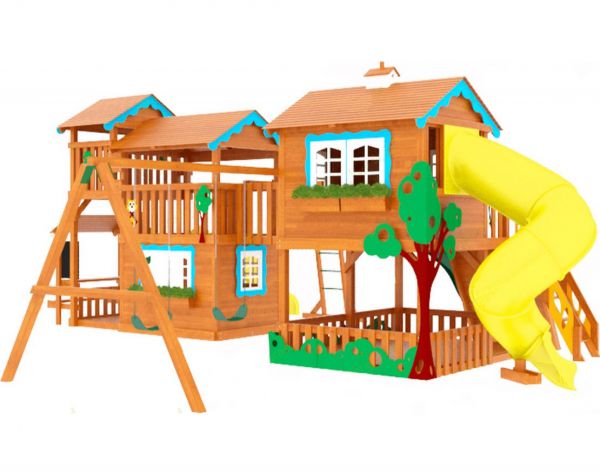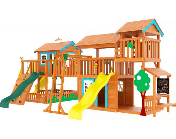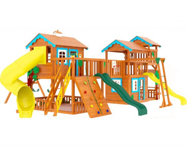 | Оптимально подходит как: | большие, деревянные, со скалодромом, с домиком, с двумя качелями, с горкой, с рукоходом |