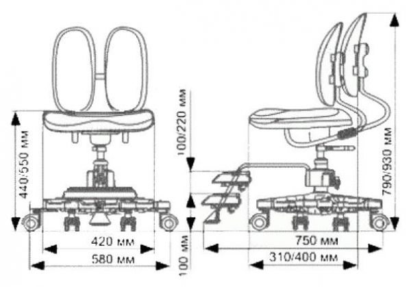 | Двойная спинка, регулируемая по высоте и глубине. | |