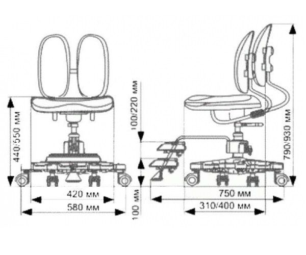 | Двойная спинка, регулируемая по высоте и глубине. | |