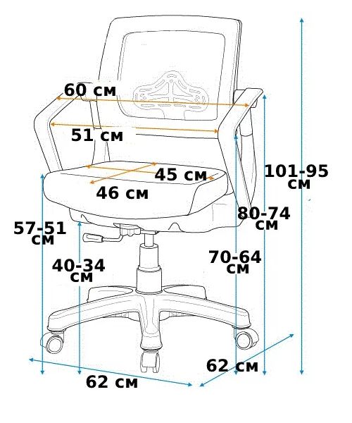 | Особенности: | на колесах, анатомические, регулируемые, с поясничной поддержкой, с сеткой, с подлокотниками, для дома, для осанки и спины, для подростка, для школьника |