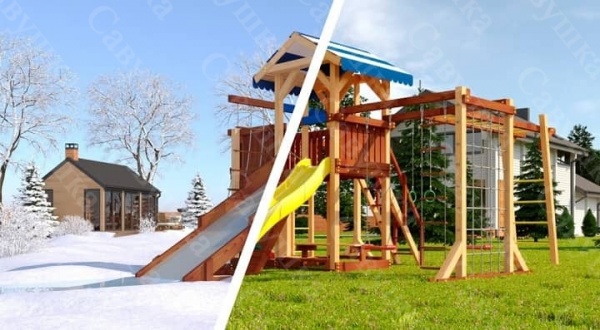 | Оптимально подходит как: | деревянные, со скалодромом, с домиком, с двумя качелями, с горкой, с качелями, с кольцами, с песочницей, с рукоходом |