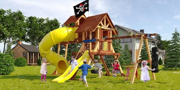 | Оптимально подходит как: | со скалодромом, с домиком, с двумя качелями, с горкой, с качелями, с рукоходом |