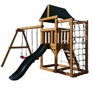 | Оптимально подходит как: | деревянные, пластиковые, с двумя качелями, с горкой, с качелями, с рукоходом |