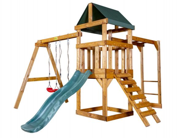 | Особенности: | деревянные, с домиком, с двумя качелями, с горкой, с качелями, с песочницей, с рукоходом |