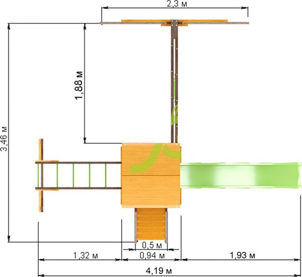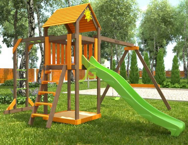 | Оптимально подходит как: | большие, деревянные, с горкой, с качелями, с песочницей, с рукоходом |