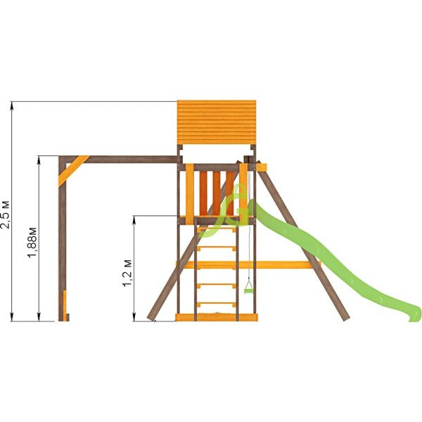 | Комплектация: | конструкция двухуровневой башни; деревянная крыша; волновая горка 2,2 м; деревянная лестница; песочница; рукоход; качельный модуль; пластиковые одиночные качели (1 шт.); комплект фурнитуры; руководство по сборке |