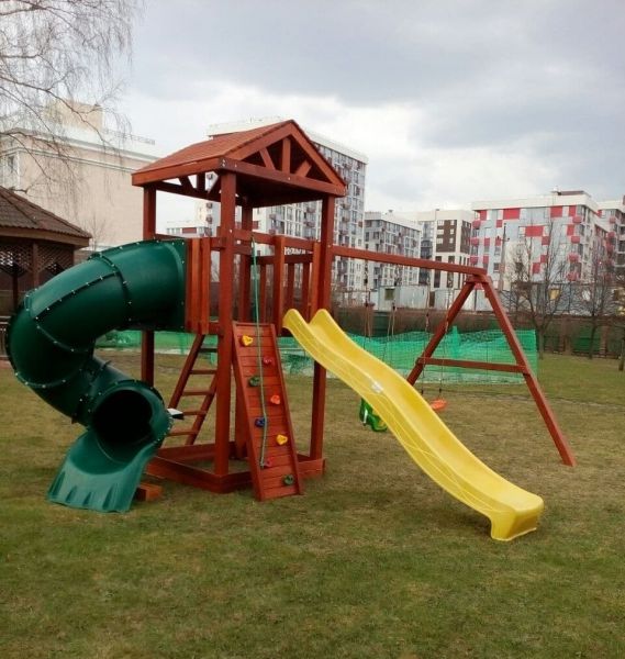| Оптимально подходит как: | деревянные, со скалодромом, с домиком, с горкой, с качелями, с песочницей |