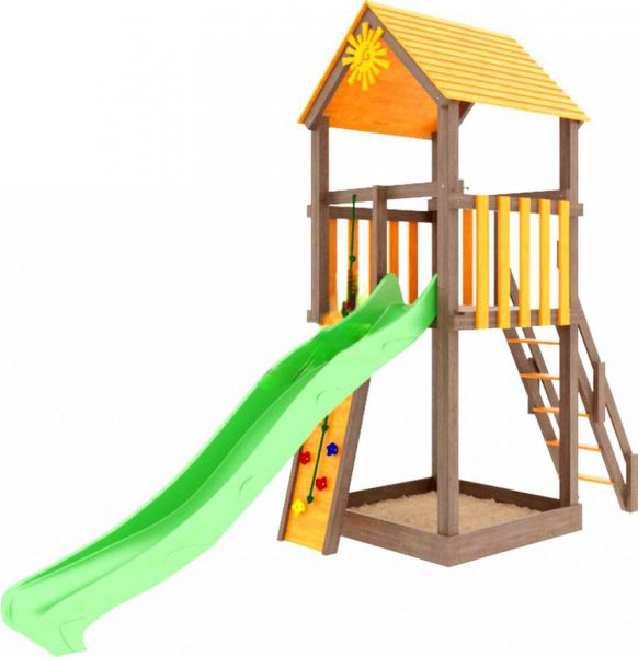 | Комплектация: | конструкция башни, стойки из клееного бруса 90х90; волновая горка 3 м (цвет на выбор); песочница; деревянная лестница; скалодром; комплект фурнитуры; руководство по сборке |