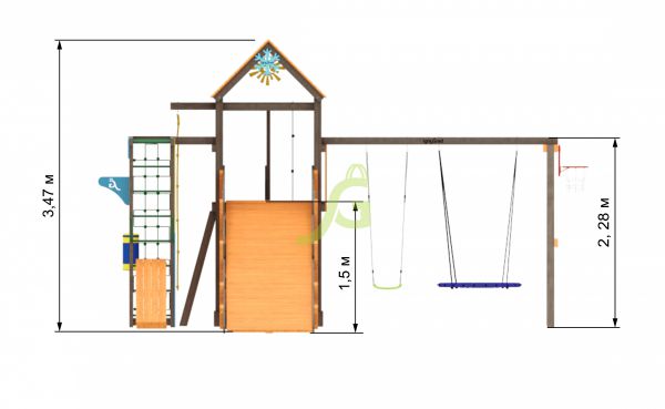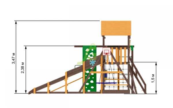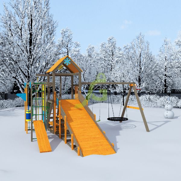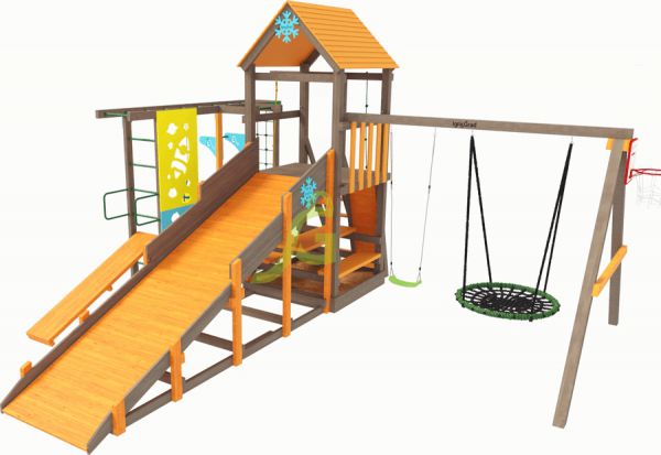 | Комплектация: | конструкция башни, стойки из клееного бруса 90х90; зимняя горка 4м; конструкция скалодром с камнями; качельный модуль; качели одиночные - 1 шт.; качели гнездо-паутинка IgraGrad 100 - 1шт.; столик с лавочками; рукоход; турник; силовая скамья; груша; баскетбольное кольцо; деревянная лестница с перилами; веревочная лестница; канат с тремя узлами; декоративный элемент cнежинка - 1 шт; декоративный элемент cолнышко - 1 шт; веревочная сетка для лазания; комплект фурнитуры; руководство по сборке |