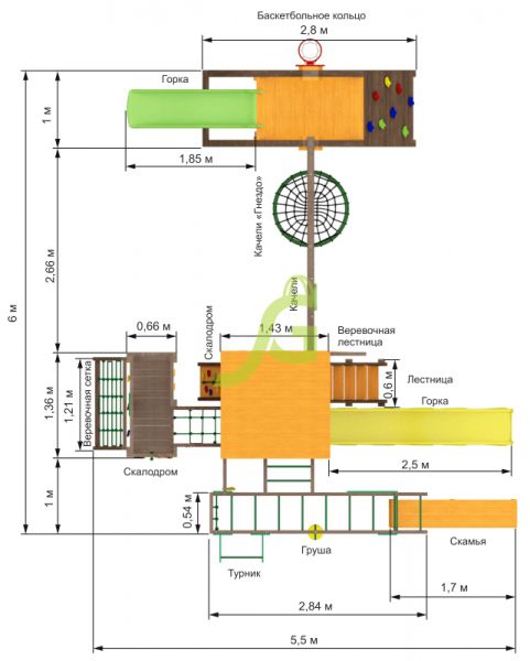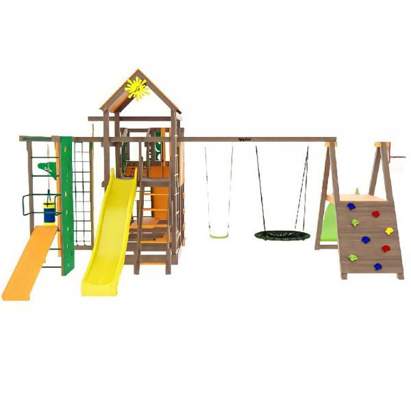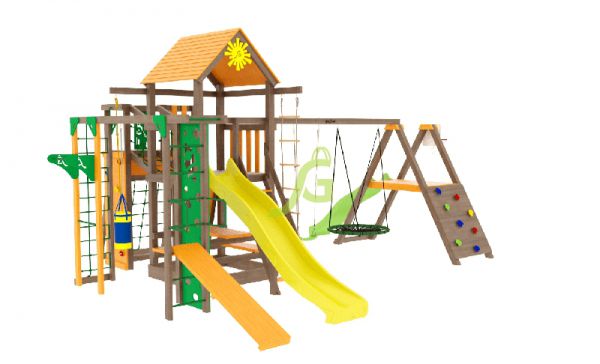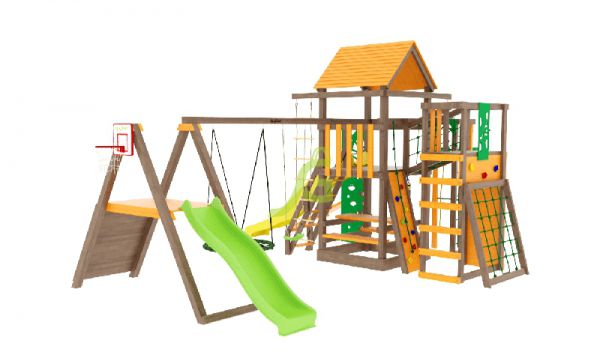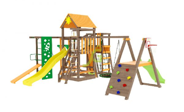 | Особенности: | большие, деревянные, со скалодромом, с баскетбольным кольцом, с гнездом, с горкой, с качелями, с рукоходом |