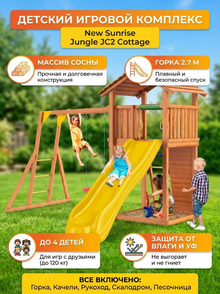 Купить детскую игровую площадку New Sunrise Jungle Cottage JC2 по эксклюзивной цене от официального дилера. Профессиональные консультации.
