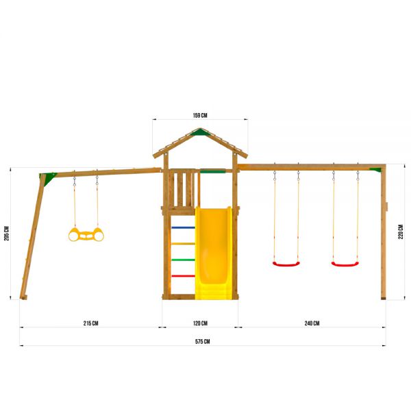 | Оптимально подходит как: | деревянные, со скалодромом, с домиком, с двумя качелями, с гнездом, с горкой, с качелями, с песочницей, с рукоходом |