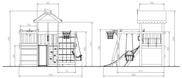 - Размеры – если вы планируете купить домашний спорткомплекс, то его размеры должны быть компактными и не занимать много места в помещении. Владельцам просторных придомовых или приусадебных площадок понравятся просторные и функциональные модели.
